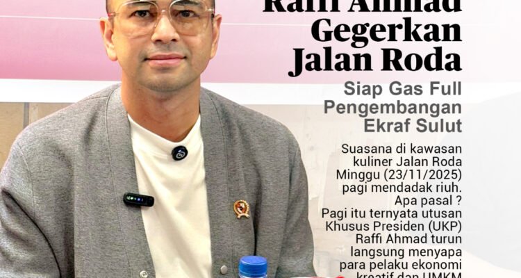 Raffi Ahmad Siap Gas Full Pengembangan Ekraf Sulut HEADLINE, SULUT|November 23, 2025Desember 16, 2025oleh ADMIN Manado – Suasana di kawasan kuliner legendaris Jalan Roda Minggu (23/11/2025) pagi